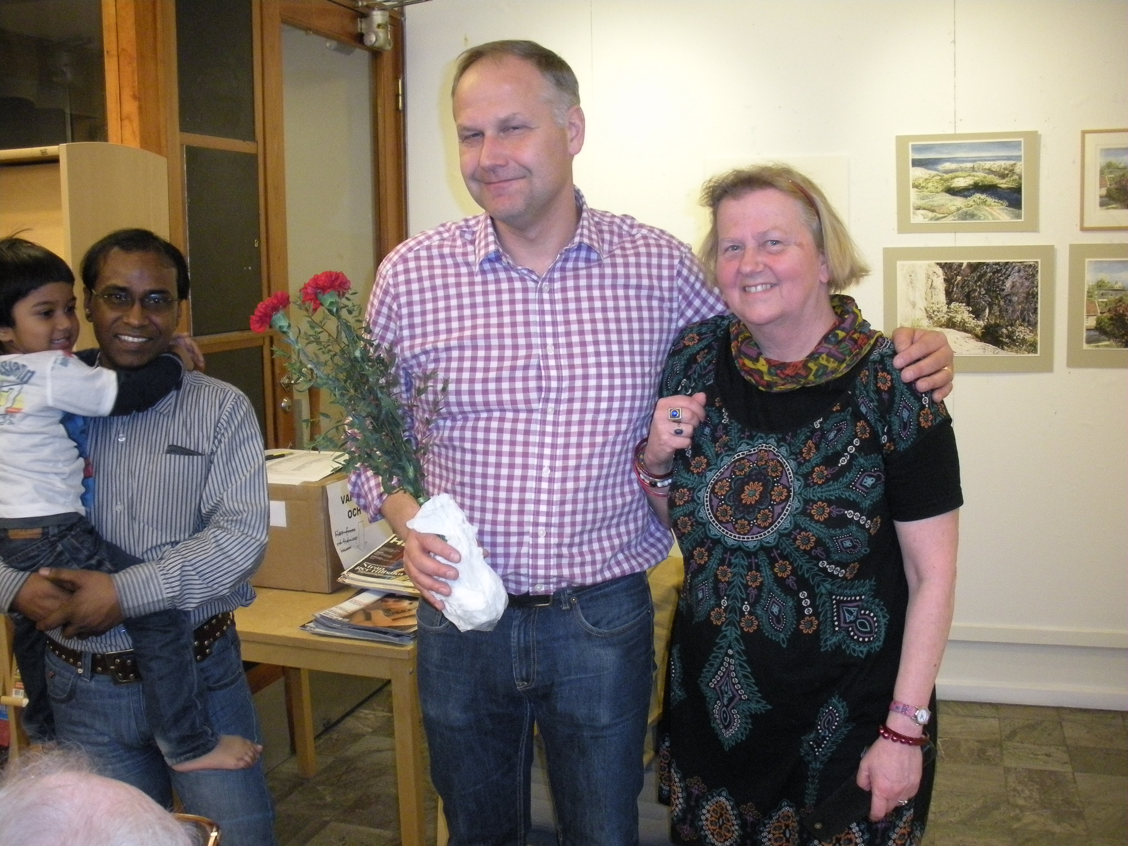 Lars Ohly besökte Östhammars Vänsterparti tisdag 26 augusti, en riktig höstkväll i regn och rusk. Ändå hade många samlats för att lyssna på Lasse. Han tog upp viktiga frågor om JOBB och VÄLFÄRD och om hur VINSTINTRESSET har fått styra skolan, vården och omsorgen, han talade om vikten av fasta jobb så att man kan få lägenhet, betala hyra och få lån t.ex.